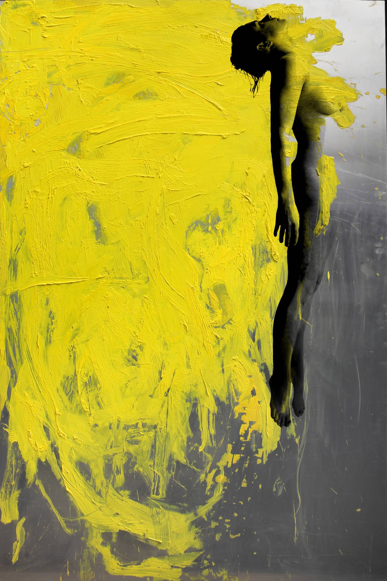 Et dans la cendre des papillons jaunes, j’ai fais voler l’hivers en éclat, 48×72, peinture marie-josee roy